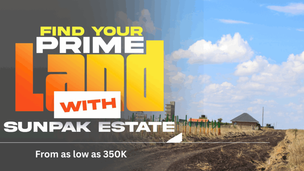 Sunpak Estate Limited is a registered Kenyan real estate company offering prime land near key amenities like schools and road networks. Our plots come with ready freehold title deeds, giving you full ownership and peace of mind. We offer a flexible payment plan—start with just a 10% deposit and clear the balance in up to 12 months. With transparent service and a strong track record, Sunpak is your trusted partner in land ownership and investment.